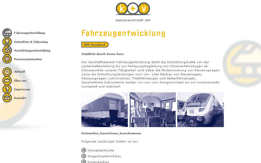 Für die Firma K+V Ingenieurgesellschaft wurde der Internetauftritt realisiert. Hier kamen Piktogramme für das Userinterface zum Einsatz die speziell für den Zweck von uns entworfen wurden.